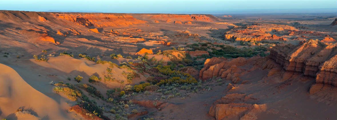 Drive to Bayanzag, the famous Flaming Cliffs with vivid red sandstone formations. Explore the area where dinosaur fossils were discovered and enjoy the cliffs at sunset when they glow in fiery hues. The surrounding desert landscape is dramatic and captivating.