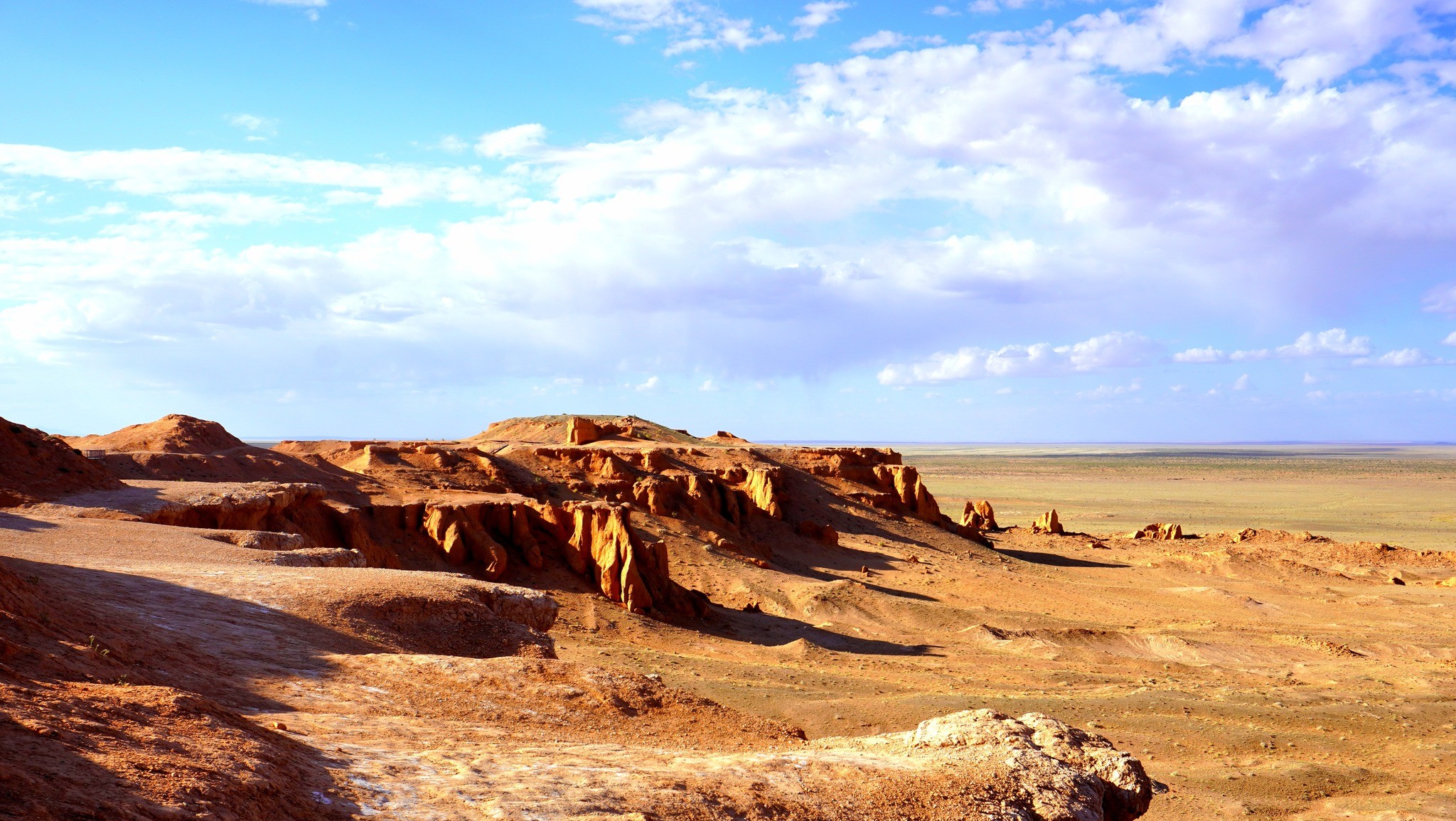 After breakfast, drive to the legendary Bayanzag Flaming Cliffs, one of the most iconic landscapes of the Gobi Desert. Known for their fiery red-orange hue, the cliffs glow brilliantly at sunrise and sunset a sight that captures the spirit of the desert. This area is world-famous as the site where paleontologist Roy Chapman Andrews discovered the first dinosaur eggs and fossils in the 1920s. Take a gentle hike among the cliffs and canyons, exploring the fossil-rich formations and enjoying panoramic desert views. As evening falls, watch the cliffs come alive with color shifting from gold to deep crimson under the setting sun. Dinner and overnight in ger camp near Bayanzag.